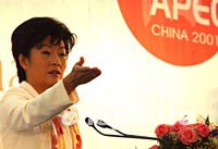 圖:章啟月談保安 2001年10月18日 10:25 ![]() APEC籌委會秘書處發(fā)言人章啟月十八日在上海國際新聞中心的早晨發(fā)布會上,多次強(qiáng)調(diào)中方對各國首腦的保安早有可靠措施。據(jù)悉美國總統(tǒng)布什今日飛抵上海。中新社記者 賈國榮 攝 |