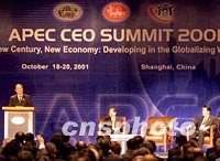 組圖:2001年APEC CEO峰會在上海開幕 2001年10月18日 15:05 ![]() 亞太經(jīng)合組織工商領(lǐng)導人峰會(APEC CEO)十八日下午在上海開幕,中國國務院副總理錢其琛出席開幕式并致辭。中新社記者 毛建軍 攝 ![]() 亞太經(jīng)合組織工商領(lǐng)導人峰會(APEC CEO)十八日下午在上海開幕,上海市長徐匡迪出席開幕式并致辭。中新社記者 毛建軍 攝