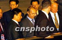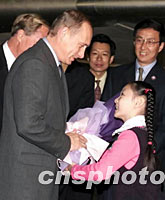 組圖:俄羅斯總統(tǒng)普京抵達(dá)上海 2001年10月18日 20:40 ![]() 10月18日,前來參加亞太經(jīng)合組織領(lǐng)導(dǎo)人非正式會(huì)議的俄羅斯總統(tǒng)弗拉基米爾·普京抵達(dá)上海。這是普京總統(tǒng)下飛機(jī)后接受中國兒童獻(xiàn)花。中新社圖 ![]() 出席APEC領(lǐng)導(dǎo)人非正式會(huì)議的俄羅斯總統(tǒng)普京十八日乘專機(jī)抵達(dá)上海。中新社記者 王瑤 攝