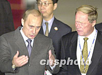 ![]() 10月18日,前來參加亞太經(jīng)合組織領(lǐng)導(dǎo)人非正式會(huì)議的俄羅斯總統(tǒng)弗拉基米爾·普京抵達(dá)上海。這是普京和到機(jī)場(chǎng)迎接的俄羅斯駐華大使羅高壽交談。中新社圖 |