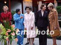 圖:APEC領(lǐng)導(dǎo)人的夫人游豫園 2001年10月20日 19:54 ![]() 出席APEC會議的經(jīng)濟(jì)體領(lǐng)導(dǎo)人配偶二十日在上海豫園游覽,中國國家主席江澤民夫人王冶坪(左二)與澳大利亞霍華德總理夫人珍妮特·霍華德(左一)、韓國總統(tǒng)金大中夫人李姬鎬,加拿大克蕾蒂安總理夫人艾琳·克蕾蒂安和俄羅斯總統(tǒng)普京夫人柳德米拉·普京(左至右)等在一起合影留念。中新社記者 王瑤 攝 |