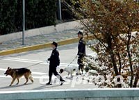 圖:警犬在上海APEC峰會外巡邏 2001年10月21日 11:15 ![]() 上海警方牽著警犬在國際會議中心外巡邏,APEC峰會十月二十日連續(xù)兩天在上海浦東舉行。中新社記者 賈國榮 攝 |
