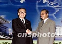 圖:江澤民迎接馬來西亞總理 2001年10月21日 11:36 ![]() 10月20日,中國國家主席江澤民在上海國際會議中心迎接馬來西亞總理馬哈蒂爾。中新社圖 |