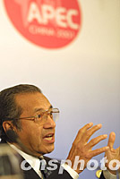 圖:馬哈蒂爾說反恐是無條件的 2001年10月21日 22:34 ![]() 參加APEC領(lǐng)導(dǎo)人非正式會議的馬來西亞總理馬哈蒂爾,二十一日在上海國際新聞中心的新聞發(fā)布會上說,反對國際恐怖主義是無條件的。中新社記者 劉殊瑾 攝 |