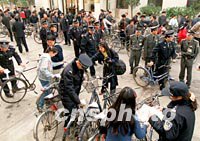 圖:北京警方嚴打盜竊自行車犯罪活動 2001年11月04日 15:49 ![]() 北京市公安局東城分局日前將從盜賊窩點追回的百余輛自行車發(fā)還給市民。首都警方目前正在全市開展嚴厲打擊以盜竊自行車為重點的犯罪活動,以保護市民財產安全。中新社記者 宋吉河 攝 |