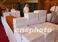 組圖:WTO部長會議開幕 多哈做好充分準備 2001年11月10日 17:08 ![]() 第四屆WTO部長會議在卡塔爾首都多哈開幕, 大會組委會為參加會議的各國官員準備各種會議資料。中新社記者 錢興強 攝  ![]() 第四屆WTO部長會議在卡塔爾首都多哈開幕,為確保大會安全,身穿阿拉伯民族服飾的保衛(wèi)人員加強安全保衛(wèi)措施。中新社記者 錢興強 攝