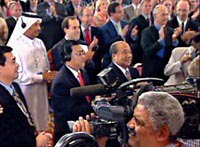 圖:WTO部長級會議全體代表祝賀中國入世 2001年11月11日 01:10 ![]() 卡塔爾財政、經(jīng)濟(jì)和貿(mào)易大臣Youssef Hussain Kamal先生在多哈一槌落下宣布通過中國加入WTO時,多哈WTO第四次部長級會議的全體代表鼓掌向中國代表團(tuán)表示祝賀。 |