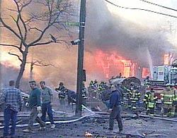 失事現(xiàn)場(chǎng)至少已有15名受傷民眾送附近醫(yī)院 2001年11月13日 01:19 ![]() ![]() 圖為墜機(jī)現(xiàn)場(chǎng)燃起的熊熊大火 中新網(wǎng)北京11月13日消息:美國航班墜毀后,紐約皇后區(qū)洛克威住宅區(qū)失事現(xiàn)場(chǎng)附近醫(yī)院已涌入多位因吸入濃煙而受傷的民眾。 這架空中巴士A-300型班機(jī)是于當(dāng)?shù)貢r(shí)間9時(shí)15分自肯尼迪機(jī)場(chǎng)起飛不久墜毀。事故現(xiàn)場(chǎng)洛克威區(qū)是個(gè)住宅區(qū),直到中午為止,火勢(shì)仍未熄滅,但因濃煙由黑轉(zhuǎn)白,顯示火勢(shì)已經(jīng)被控制。紐約市警察已全力疏散當(dāng)?shù)鼐用竦桨踩貐^(qū)。 災(zāi)區(qū)附近的急診室目前至少已有15名受傷民眾,其中有2人因?yàn)槲霛鉄熐闆r較為嚴(yán)重。 |