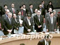 圖:聯(lián)合國安理會向紐約墜機死難者致哀 2001年11月13日 10:01 ![]() 美東時間十二日上午,聯(lián)合國安理會召開反恐外長會議。會議開始時,安理會全體起立默哀一分鐘,為當(dāng)日上午紐約肯尼迪機場飛機墜毀事件中的遇難者表示深切哀悼。中新社記者 陳建 攝 |