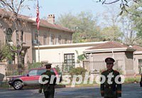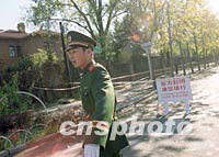 圖文:紐約空難后美國駐華大使館擴(kuò)大警戒范圍 2001年11月13日 15:37 ![]() 北京警方13日在美國駐中國大使館前增加警力并擴(kuò)大了警戒范圍,幾條通往使館門前的道路都設(shè)置了路障,禁止行人和車輛通行。美國美洲航空公司一架空中客車十二日在紐約墜毀,是否與恐怖主義襲擊有關(guān)仍有待進(jìn)一步調(diào)查。中新社圖 武仲林 攝 ![]() 美國墜機(jī)事件后,中國軍方十三日對(duì)位于北京建國門外的美國使館區(qū)加強(qiáng)安保工作!熬乓灰弧焙笠恢睂(shí)行戒嚴(yán)的美使館區(qū)內(nèi)秩序安定。中新社圖 劉殊瑾 攝