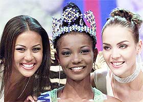 圖文:"黑姑娘"首次摘得"世界小姐"桂冠 2001年11月17日 16:11 ![]() 冠軍艾芭妮(中)、亞軍澤雷達(dá)(左)和季軍朱麗特(右)。(美聯(lián)社圖) 中新網(wǎng)香港11月17日消息:18歲的尼日利亞小姐艾芭妮·達(dá)雷戈(Agbani Darego)昨天榮登2001世界小姐寶座,從而成為第一位獲得“世界小姐”桂冠的黑人非洲小姐,她也是這一競選活動的第51位獲勝者。 93位入選佳麗昨晚齊聚南非太陽城競爭2001年“世界小姐”,艾芭妮最終從中脫穎而出。 世界小姐艾芭妮在賽前對路透社記者說,“黑人是美麗的!彼恢眽粝氤蔀橐幻(jì)算機(jī)科學(xué)家。 阿魯巴小姐澤雷達(dá)(Zerelda Lee)獲得亞軍,蘇格蘭小姐朱麗特·簡·霍恩(Juliet-Jane Horne)獲得季軍。 據(jù)悉,在近半個多世紀(jì)以來,只有三位獲勝者來自非洲,而其中兩位是來自南非的白種人,她們分別在1958年和1974年榮獲世界小姐,第三位是1954年,來自阿拉伯國家的埃及小姐。 本屆的“世界小姐”做了一些大膽的改革,其中一項(xiàng)措施就是不再公布佳麗們的三圍數(shù)字。發(fā)起人摩里夫人表示,“比賽除了要評判參賽者的容貌與身材外,更重要的一點(diǎn)是,要對她們的學(xué)識進(jìn)行打分,僅有容貌而無內(nèi)涵的花瓶,今后將沒有資格成為‘世界小姐’,只有綜合得分最高者,才是真正的‘世界小姐’。” |