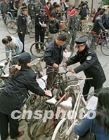 圖:北京百姓丟失自行車現(xiàn)象得到好轉(zhuǎn) 2001年11月21日 10:48 ![]() 北京市公安局西城分局日前向市民發(fā)還被盜自行車。首都警方通過一段時間的嚴(yán)厲打擊盜竊自行車專項行動,京城事關(guān)百姓切身利益的丟失自行車現(xiàn)象得到好轉(zhuǎn)。中新社記者 宋吉河 攝 相關(guān)報道:圖:北京警方嚴(yán)打盜竊自行車犯罪活動 相關(guān)報道:圖:廣州警方嚴(yán)打盜搶機動車犯罪  |