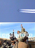 圖:北方聯(lián)盟將在一兩天內(nèi)對昆都士發(fā)起總攻 2001年11月24日 16:02 ![]() 二十三日,美軍多次出動B—52重型轟炸機對阿富汗昆都士東部和東北部塔利班陣地進行猛烈轟炸。北方聯(lián)盟二十三日攻占了昆都士東約二十公里的要塞汗阿巴德(鎮(zhèn))。北方聯(lián)盟將在一兩天內(nèi)對昆都士發(fā)起總攻。圖為北方聯(lián)戰(zhàn)士對美機轟炸塔利班陣地表示喜悅之情。中新社  |