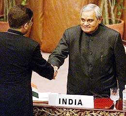 巴總統(tǒng)在南亞首腦會(huì)向印總理伸出友誼之手(圖) 2002年01月05日 15:45 ![]() 中新網(wǎng)北京1月5日消息:巴基斯坦總統(tǒng)穆沙拉夫在剛剛揭幕的南亞區(qū)域合作聯(lián)盟首腦會(huì)議上發(fā)表演說(shuō)后,主動(dòng)與印度總理瓦杰帕伊握手。 巴基斯坦總統(tǒng)穆沙拉夫發(fā)表演說(shuō)指出,所有與會(huì)代表地位必須平等,各國(guó)要尋求長(zhǎng)遠(yuǎn)的辦法,解決地區(qū)內(nèi)事務(wù)爭(zhēng)端.他還說(shuō),巴基斯坦是恐怖主義的受害者,并重申他已準(zhǔn)備好同印度展開(kāi)對(duì)話。他在結(jié)束發(fā)言之前,主動(dòng)提到與印度的緊張關(guān)系,并表明愿意隨時(shí)與印度展開(kāi)和平對(duì)話以及愿意伸出真正友誼之手,然后他就步向瓦杰帕伊與他握手。 而印度總理瓦杰帕伊則感謝穆沙拉夫主動(dòng)向他伸出友誼之手,并呼吁雙方停止無(wú)意義的暴力沖突。他稱印度一直積極尋求同巴基斯坦和談,但依然受到襲擊。他還說(shuō),印度在近二十年間不斷受國(guó)際恐怖主義侵襲,全球必須合作打擊恐怖主義。 印巴關(guān)系因?yàn)橛《葒?guó)會(huì)遇襲事件而惡化,雙方均在邊境部署軍隊(duì)并不時(shí)交火。印度總理瓦杰帕伊要求巴基斯坦采取強(qiáng)硬手段對(duì)付境內(nèi)極端份子,否則拒絕與穆沙拉夫直接對(duì)話。兩國(guó)領(lǐng)袖昨晚在尼泊爾皇宮參加晚宴期間沒(méi)有直接接觸。  |