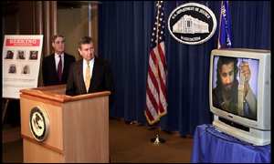 圖文:美公布基地新錄像和五名恐怖嫌疑人照片 2002年01月18日 07:03 ![]() 中新網(wǎng)北京1月18日消息:美國司法部長阿什克羅夫特17日公布了一段5名“基地”組織成員謀劃對美國展開“自殺恐怖襲擊”的錄像,并呼吁各方提供相關(guān)信息,以盡早將他們緝拿歸案。 錄像帶是在阿富汗首都喀布爾原來屬于穆罕默德·阿提夫的房子廢墟中發(fā)現(xiàn)的。美國懷疑阿提夫是"基地"組織的高級領(lǐng)導(dǎo)人之一。 阿什克羅夫特說,錄像帶顯示有五名男子很可疑,可能是"基地"組織成員。 阿什克羅夫特說,看上去他們正在散播殉道信息,很明顯他們準(zhǔn)備發(fā)動自殺式攻擊。 其中一名男子相信叫哈立德·本·穆罕默德·阿爾胡阿尼,從錄像上看,他握著自動步槍,他不時地去吻步槍,還咧嘴笑著。 還有一名男子叫阿卜杜拉·拉希姆,他也面帶笑容,講話的時候左手還作著手勢。 還有兩個人一個叫阿里·哈森,另一個叫拉姆齊·比納爾希比。第五個人目前身份不明。 阿什克羅夫特說,這些人有可能在世界上任何一個角落。他呼吁如果有人發(fā)現(xiàn)這些人的信息,請和美國駐當(dāng)?shù)氐拇笫桂^或者聯(lián)邦調(diào)查局聯(lián)系。  |