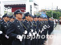 圖:廣東肇慶警方舉行嚴打誓師大會 2002年01月20日 18:24 ![]() 20日,廣東肇慶警方在該市市區(qū)牌坊廣場舉行嚴打誓師大會,一千三百多名警察組成四個方隊,并同時展示了百余輛各類警用車輛和各種警械裝備。中新社圖 黃耀輝 攝  |