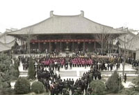 佛指舍利赴臺轉(zhuǎn)播開創(chuàng)兩岸三地媒體合作新篇 2002年02月22日 16:31 ![]() 世間僅存的釋迦牟尼佛指真身舍利 ![]() 陜西西安法門寺全景 ![]() 恭送法會盛況 中新網(wǎng)香港2月22日消息:臺北訊,佛界圣物、陜西西安法門寺佛指舍利即將迎請赴臺。據(jù)悉,在法門寺為此舉行的盛大恭送法會儀式中,首開兩岸三地新聞媒體合作現(xiàn)場直播的模式。 今天下午三時在法門寺舉行的“佛指舍利赴臺灣地區(qū)瞻禮恭送法會”,是此次盛大活動的第一場重頭戲,由陜西電視臺提供人力,香港鳳凰衛(wèi)視制作,臺灣東森提供衛(wèi)星頻道亞太二號的方式,在兩岸三地的范圍內(nèi)進行現(xiàn)場直播,所有電子媒體均采用同樣的訊號發(fā)射。 據(jù)悉,這一合作構(gòu)想三個月前提出,經(jīng)過一個月的協(xié)調(diào)才達成。 此外,攝影機進入大雄寶殿禁地拍攝法會現(xiàn)場,也是此行的一個“重要突破”。但由于只允許兩部攝像機進入寶殿禁地,臺灣的中視、華視、民視、東森、中天、TVBS、三立、佛光衛(wèi)視等眾多電視媒體又因此進行了一番協(xié)調(diào)。 據(jù)悉,佛指舍利抵臺后37天的七場大型活動,也將依此合作模式進行現(xiàn)場直播。明天上午,佛指舍利的專機從西安咸陽機場起飛,經(jīng)停香港轉(zhuǎn)機,一直到抵臺并由高速公路進臺北市區(qū)臺大體育館“安座”,整個過程中,沿途將由兩岸三地十家電視媒體的SNG(現(xiàn)場新聞轉(zhuǎn)播)車進行接力轉(zhuǎn)播,以對盛況進行完整的紀錄。