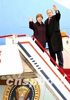 圖:布什和夫人告別北京 2002年02月22日 17:29 ![]() 美國總統(tǒng)布什和夫人二十二日下午在北京登上空軍一號招手告別,結(jié)束中國之行。中新社記者 賈國榮 攝