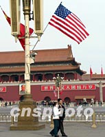圖:中美國旗招展天安門引市民關(guān)注 2002年02月22日 18:36 ![]() 美國總統(tǒng)布什訪華第二日,天安門廣場(chǎng)中美國旗在陽光下招展飄揚(yáng),金水橋邊車水馬龍,一些游人以中美國旗為背景照相留影。許多市民對(duì)布什昨天關(guān)于“中美關(guān)系搞好了對(duì)世界都有益”的表述十分贊賞。中新社記者 王麗南 攝