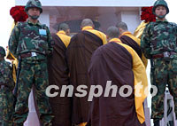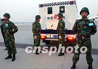 組圖:咸陽機場戒備森嚴護衛(wèi)佛指舍利 2002年02月23日 17:28 ![]() 法門寺佛指舍利赴臺灣地區(qū)瞻禮(供奉)恭送法會二十三日在西安咸陽機場舉行圖為當?shù)卣沙鼍臁⑽渚_保佛指舍利安全。中新社圖 錢興強 攝 ![]() 法門寺佛指舍利二十三日在武警嚴密護送下,運抵西安咸陽機場。中新社圖 錢興強 攝