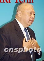 ![]() 香港2002年行政長(zhǎng)官選舉候選人提名期28日下午結(jié)束,選舉主任彭鍵基法官隨即宣布董建華為香港特區(qū)第二任行政長(zhǎng)官候任人。中新社圖 洪少葵 攝