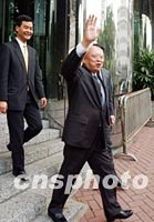 ![]() 二月二十八日董建華得知成為香港特區(qū)第二任行政長(zhǎng)官候任人后步出圣約翰大廈,并面帶笑容向記者招手。中新社記者 任海霞 攝