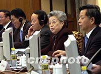圖:吳儀出席"申辦2010年上海世博會陳述會" 2002年03月11日 17:10 ![]() 中國國務委員、(上海世博)申辦委主任委員吳儀(右二),十一日在北京釣魚臺國賓館舉行的“申辦2010年上海世博會陳述會談”上,與外交部副部長王亞光(右三)、財政部長金立群(右一)等申辦委副主任委員,出席會談并作發(fā)言。中新社記者 鄒憲 攝