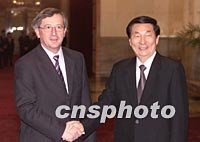 朱镕基說(shuō)以色列應(yīng)立即從巴勒斯坦地區(qū)全部撤軍 2002年04月04日 21:35 ![]() 中國(guó)國(guó)務(wù)院總理朱镕基四日在北京人民大會(huì)堂會(huì)見(jiàn)來(lái)訪的盧森堡首相容克。中新社圖 毛建軍 攝 中新社北京四月四日電 (記者 朱大強(qiáng))中國(guó)總理朱镕基今天在與盧森堡首相容克會(huì)談時(shí)指出,以色列應(yīng)立即執(zhí)行聯(lián)合國(guó)安理會(huì)有關(guān)決議,從巴勒斯坦地區(qū)全部撤軍,保證阿拉法特的人身安全。 朱镕基向容克介紹了中國(guó)為緩和目前中東緊張局勢(shì)所做的努力及中方的原則立場(chǎng)。 朱镕基說(shuō),中國(guó)政府為緩和巴以緊張局勢(shì)做出了積極努力。中國(guó)認(rèn)為,阿拉法特是巴勒斯坦人民的領(lǐng)袖,是巴以和談的開(kāi)創(chuàng)者之一,為推動(dòng)中東和平進(jìn)程做出了重要貢獻(xiàn)。在當(dāng)前嚴(yán)峻形勢(shì)下,國(guó)際社會(huì)應(yīng)發(fā)揮更加積極、有效的作用。中國(guó)贊賞包括盧森堡在內(nèi)的歐盟國(guó)家為緩和中東局勢(shì)所做的努力。 朱镕基表示,作為安理會(huì)常任理事國(guó),中國(guó)將繼續(xù)同國(guó)際社會(huì)一道,為中東問(wèn)題的早日解決做出自己的貢獻(xiàn)。 容克說(shuō),面對(duì)中東地區(qū)不斷惡化的局勢(shì),歐盟國(guó)家深感不安。歐盟認(rèn)為,世界上所有愛(ài)好和平的國(guó)家應(yīng)共同努力,特別是美國(guó)、中國(guó)及歐盟應(yīng)加強(qiáng)合作,推動(dòng)中東問(wèn)題早日解決。 雙方還就“九·一一”后的國(guó)際形勢(shì)及反恐等國(guó)際和地區(qū)問(wèn)題深入交換了意見(jiàn)。