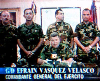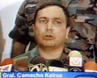 多圖:委內(nèi)瑞拉高級將領發(fā)表電視講話加入叛軍 2002年04月12日 12:22 ![]() 委內(nèi)瑞拉當?shù)貢r間4月11日晚(北京時間12日上午),國民警衛(wèi)隊的卡伊魯茲將軍宣布,總統(tǒng)查韋斯的政府已經(jīng)"不再履行其職能",全國局勢已經(jīng)被軍隊控制。此前已有多名高級軍官宣布不承認總統(tǒng)查韋斯,并要求其下臺。圖為委內(nèi)瑞拉軍隊司(中).(春風)