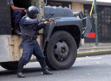 ![]() 委內(nèi)瑞拉當?shù)貢r間4月11日晚(北京時間12日上午),國民警衛(wèi)隊的卡伊魯茲將軍宣布,總統(tǒng)查韋斯的政府已經(jīng)“不再履行其職能”,全國局勢已經(jīng)被軍隊控制。此前,委內(nèi)瑞拉發(fā)生數(shù)十萬人罷工,群眾要求查韋斯辭職。他們與警察、國民警衛(wèi)隊以及總統(tǒng)的支持者發(fā)生了激烈沖突,至少已導致12人死亡,96人受傷。圖為騷亂中一名國民警衛(wèi)隊員躲在車后準備射擊。(春風)