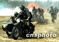 圖:空降兵特種部隊進行偵打綜合演練 2002年04月15日 10:44 ![]() 解放軍空軍空降兵特種分隊四月進行偵察打擊一體化綜合演練,著陸官兵快速向目標(biāo)沖擊。中新社記者 王麗南 攝