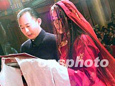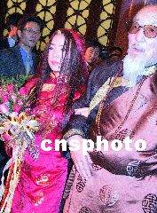 臺灣前政要陳履安長子與藏族姑娘在京喜結(jié)良緣 2002年04月28日 17:09 ![]() 圖為藏族姑娘在父親的帶領(lǐng)下步入結(jié)婚禮堂。王麗南 攝 ![]() 臺灣先生與西藏女認(rèn)識兩月成婚。王麗南 攝 ![]() 參加陳宇廷和藏族姑娘央金拉姆的婚禮,爭相為新婚人送哈達(dá)。王麗南 攝 中新社北京四月二十八日電(記者耿軍)臺灣知名人士陳履安先生的長子陳宇廷與西藏女企業(yè)家、歌手央金拉姆喜結(jié)良緣。陳宇廷與央金拉姆的婚禮今天上午在北京飯店大宴會廳舉行。 婚禮主禮臺正后方懸掛著碩大的“解脫”二字,左右懸掛弘一大師的書法“不為自己求安樂,但愿眾生得離苦”。主禮臺上陳放有四只高大的經(jīng)幢及唐卡,六位身披法衣的喇嘛分列兩側(cè)。 上午十一時(shí),婚禮在法號聲中開始。大型投影屏幕上播放新人剪影短片,片中介紹了陳宇廷的爺爺陳誠、父親陳履安及央金拉姆一家。 當(dāng)身著白色中式對襟衫的伴郎陪陳宇廷、身著藏裝的伴娘陪央金拉姆入席時(shí),活佛帶領(lǐng)喇嘛唱頌吉祥祝福文。 這對新人依次獻(xiàn)上禮品,以報(bào)答父母、眾生、國家和三寶四重恩德,并跟隨活佛念“懺悔經(jīng)”、“發(fā)愿文”。 這對新人在宣讀結(jié)婚誓約后,交換信物。陳宇廷贈(zèng)予央金漢傳僧服和藏傳僧服,央金贈(zèng)予陳宇廷金鋼鈴和金鋼杵。 陳履安先生代表家長向主持婚禮的活佛及來賓表示感謝。 擔(dān)任解脫服飾實(shí)業(yè)副董事長、化育文教基金會與陳誠文教基金會執(zhí)行長的陳宇廷,今年三十七歲,曾獲哈佛大學(xué)企業(yè)管理碩士學(xué)位。央金拉姆是藏族女企業(yè)家和歌手,她曾在北京中央民族大學(xué)藝術(shù)系和蘭州西北民族大學(xué)藝術(shù)系就讀,近年出任奇正藏藥集團(tuán)營銷副總經(jīng)理。這對新人于去年在廣東中山相識。 各界人士近千人出席了今天的婚禮。 相關(guān)報(bào)道:臺灣前“監(jiān)察院長”陳履安抵京參加兒子婚禮