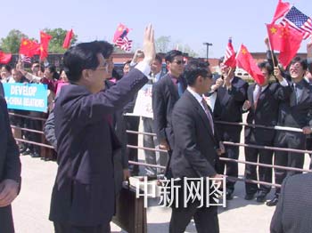圖文:胡錦濤抵達華盛頓 美國助理國務卿等迎接 2002年05月01日 09:38 ![]() 當?shù)貢r間4月30日上午11時,胡錦濤副主席乘專機抵達美國首都華盛頓,繼續(xù)其對美國的正式訪問。圖為胡錦濤副主席攜夫人步下舷梯。中新社 徐德金攝 ![]() 胡錦濤面含笑容迎向歡迎的人群,頻頻揮手致意。中新社 徐德金攝 ![]() 胡錦濤在機場受到美方官員、中國駐美使館工作人員和華人華僑、留學生代表的熱烈歡迎。中新社 徐德金攝 中新網(wǎng)華盛頓四月三十日電(記者徐德金)中國國家副主席胡錦濤和夫人今天上午十一時許乘專機抵達美國首都華盛頓。在安德魯空軍機場,胡副主席受到美方官員、中國駐美使館工作人員和華人華僑、留學生代表的熱烈歡迎。 到機場迎接胡錦濤副主席的美方官員有助理國務卿凱利、安德魯空軍基地司令等。美國駐華大使雷德陪同胡副主席一行從紐約同機抵達。 陽光朗照,春風和煦,胡錦濤副主席和夫人步下舷梯、踏上紅地毯。中國駐美使館工作人員向胡副主席和夫人敬獻了鮮花。在熱烈的歡迎聲中,胡副主席面含笑容迎向歡迎的人群,頻頻揮手致意。 胡錦濤副主席是應美國副總統(tǒng)切尼的邀請,于四月二十七日抵達夏威夷開始對美國進行訪問的。 據(jù)悉,在華盛頓訪問期間,胡錦濤副主席將與布什總統(tǒng)、切尼副總統(tǒng)、鮑威爾國務卿以及國會議員等進行會見、會談;還將出席美中關(guān)系全國委員會等八個團體舉辦的晚餐演講;會見華人華僑、留學生和中資機構(gòu)的代表。