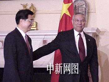 圖:胡錦濤與美國國務(wù)卿鮑威爾會晤 2002年05月01日 12:58 ![]() 美國當(dāng)?shù)貢r間四月三十日晚,中國國家副主席胡錦濤與美國國務(wù)卿鮑威爾舉行會晤。是日,鮑威爾在國務(wù)院大樓設(shè)晚宴款待胡錦濤。中新社 徐德金/攝