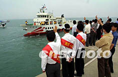 |  | 湄洲媽祖金身首次直航金門巡安 創(chuàng)下多個第一 2002年05月09日 10:03    湄洲祖廟媽祖金身于本月8日從湄洲島客運碼頭起駕,直航金門進行為期5天的巡安活動。這是50多年來媽祖金身首次以海上直航的方式出巡,也是湄洲島首次實現(xiàn)對金門的直航。圖為湄洲群眾依依不舍地向遠去的金門“太武號”船告別。鄭憲 攝    應金門天后宮媽祖會的邀請,湄洲祖廟媽祖金身于本月8日從湄洲島起駕,直航金門進行為期5天的巡安活動。這是50多年來媽祖金身首次以海上直航的方式出巡。 圖為媽祖金身所經(jīng)過之路,家家戶戶燃起香火,老人們虔誠地目送媽祖。鄭憲 攝    應金門天后宮媽祖會的邀請,湄洲祖廟媽祖金身于本月8日從湄洲島客運碼頭起駕,直航金門進行為期5天的巡安活動。這是50多年來媽祖金身首次以海上直航的方式出巡,并首次到金門接受信眾朝拜,同時也是湄洲島首次實現(xiàn)對金門的直航。鄭憲 攝 中新網(wǎng)香港5月9日消息:臺北訊,金門舉辦“壬午年湄洲媽祖巡安金門”盛會,全縣各媽祖廟的代表52人,本月7日組團直航福建莆田市湄洲恭迎媽祖,并于昨天下午扺達金門,繞境安巡五天。 據(jù)香港“中通社”報道,這是湄洲媽祖的金身第一次巡安金門。恭迎隊伍7日直航湄洲,展開“海上尋根之路-赴湄洲迎媽祖”,途中先行彎繞金門縣托管的烏坵鄉(xiāng),并首次搭載55名烏坵鄉(xiāng)親到湄洲探親尋根。 福建省臺辦負責人指出,此次湄洲媽祖金身巡安金門,創(chuàng)下50多年來兩岸交往史上的“四個第一”:即第一次以海上直航方式出巡;第一次到金門接受信眾朝拜;第一次激活湄洲島3000噸客運碼頭;第一次實現(xiàn)湄洲島與金門、烏坵之間的客運通航。 據(jù)悉,湄洲媽祖廟董事長林金榜昨天率領111人的護駕團,隨湄洲媽祖抵金門;同時,臺灣北港朝天宮、新港奉天宮、大甲鎮(zhèn)瀾宮董事長顏清標等也組團到金門。 恭迎團表示,金門目前正在轉型,希望湄洲媽祖到金門保佑平安;同時,金門最近缺水干旱非常嚴重,希望湄州媽祖為金門帶來甘霖,紓解旱象。
