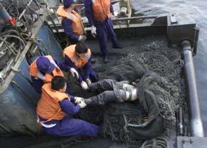 圖文:5·7空難第75具遇難者遺體被打撈出水 2002年05月11日 22:06 ![]() 中新社記者:王麗南 攝 中新網(wǎng)大連5月11日消息:北海艦隊(duì)某部救撈船官兵5月11日傍晚時(shí)分又打撈出一具男性遇難者遺體,至此,“五·七”空難遇難者遺體已有七十五具被打撈出水。