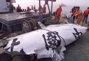 圖文:打撈起重要飛機(jī)殘骸 搜尋范圍進(jìn)一步縮小 2002年05月12日 07:32 ![]() “五-七”空難現(xiàn)場(chǎng)又打撈出一塊較大的飛機(jī)殘骸,殘骸上“中國北”三個(gè)字清晰可見。(中新社記者王麗南攝) 中新網(wǎng)大連5月12日消息:昨日深夜11時(shí)25分,交通部救撈局局長宋家慧給新華社記者打手機(jī)說:“今天搜救工作取得重要進(jìn)展,打撈起飛機(jī)頂蓋、起落架、應(yīng)急發(fā)電機(jī)、應(yīng)急門、輪胎等重要飛機(jī)殘骸,這將對(duì)事故原因分析起到重要作用。” 據(jù)新華社報(bào)道,宋家慧的聲音在電話里提高了聲調(diào):“更重要的是,根據(jù)已打撈出水的機(jī)頭殘骸到機(jī)尾殘骸的位置,我們已經(jīng)把飛機(jī)墜落的區(qū)域縮小在長600米、寬400米東西方向海域內(nèi),為下一階段的‘黑匣子’打撈和搜救工作開展打開了新的局面! 據(jù)宋家慧介紹,明天一些救撈船只將暫時(shí)調(diào)離現(xiàn)場(chǎng),等待從國外調(diào)集的“黑匣子”專用控測(cè)設(shè)備到達(dá)后再次展開新一輪打撈工作。(完)