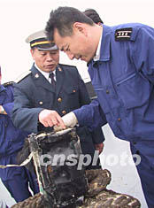 圖:救撈人員辨認(rèn)飛機(jī)殘骸上的電子感應(yīng)設(shè)備 2002年05月13日 13:56 ![]() 十二日中午,北海艦隊派出的救撈船又打撈出一塊較大飛機(jī)殘骸,殘骸中有一些關(guān)鍵設(shè)備。圖為北海艦隊副司令員張巖和海軍救撈船官兵正在辨認(rèn)布滿電子元件的電子感應(yīng)設(shè)備。中新社記者 王麗南 攝