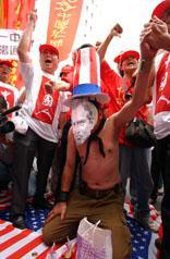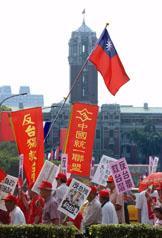 |  | 臺北"反臺獨救臺灣"大游行吁當局放棄"臺獨"黨綱 2002年05月19日 16:30    臺灣中國統(tǒng)一聯(lián)盟5月19日發(fā)起“反臺獨、救臺灣”萬人大游行。民眾以醒目標語及旗幟,表達支持一個中國、反對“臺獨”的立場。(“中央社”圖)    臺灣中國統(tǒng)一聯(lián)盟5月19日發(fā)起“反臺獨、救臺灣”萬人大游行,在“美國在臺協(xié)會”門前,由一名面戴面具、扮作美國總統(tǒng)布什的男子跪地磕頭,就美國干涉臺海事務向臺灣民眾道歉。(“中央社”圖) 中新社香港五月十九日電 臺北消息:中國統(tǒng)一聯(lián)盟今天發(fā)起“五一九反臺獨、救臺灣大游行”,數(shù)千臺灣民眾身穿“One China”的紅上衣及紅帽子,高呼“反臺獨、救臺灣”,以表達他們支持一個中國、反對臺獨的立場。 據(jù)“中央社”報導,游行隊伍于下午在臺北“中正紀念堂”出發(fā),民眾在經(jīng)過美國在臺協(xié)會時高呼“ROT(臺灣共和國),爛!爛!爛!One China,贊!贊!贊!”的口號,部分情緒激動的民眾并向美國在臺協(xié)會投擲雞蛋。 游行活動總領(lǐng)隊、中國統(tǒng)一聯(lián)盟主席王津平,日前在獨派人士的“臺灣正名”游行活動中遭到攻擊而受傷,今天他在游行前發(fā)表演講,抨擊臺灣當局兩年來,在民進黨臺獨黨綱箝制下,導致兩岸關(guān)系緊張、經(jīng)濟嚴重衰退、社會混亂不安。 王津平說,今天“反臺獨、救臺灣”大游行的主要訴求,就是呼吁當局撤除臺獨黨綱,遵守“一個中國”,回歸“九二共識”。 中新網(wǎng)香港5月19日消息:臺北訊,臺灣中國統(tǒng)一聯(lián)盟今天號召發(fā)起數(shù)十個島內(nèi)“在野”政黨次級團體、反“臺獨”的民眾、車隊共同參與的“519反‘臺獨’、救臺灣萬人大游行”。 此次大游行由中國統(tǒng)一聯(lián)盟主席王津平擔任總領(lǐng)隊。日前為反制“臺獨”集團的所謂“臺灣‘正名’游行”而遭暴力攻擊并受傷的王津平,在游行出發(fā)前發(fā)表演說指出,陳水扁上臺兩年以來,都因為“臺獨”黨綱箝制當局政策發(fā)展,導致兩岸關(guān)系緊張、島內(nèi)嚴重經(jīng)濟衰退、社會混亂。 此次游行的主要訴求,就是呼吁陳水扁當局及民進黨撤除“臺獨”黨綱,遵守“一中原則”,回歸“九二共識”,以正式渠道恢復兩岸談判;立即三通,加速經(jīng)濟互補互利。 此外,游行隊伍向當局喊出“反軍購、要福利”、“要顧三通,不要神盾”等口號。 據(jù)悉,游行隊伍也以踐踏美國國旗的方式,表達對美國介入臺海事務的強烈不滿。 另外,中國統(tǒng)一聯(lián)盟今晚將在舉辦“中國人團結(jié)之夜”音樂會,呼應白天的游行主題。 相關(guān)報道:臺灣中國統(tǒng)一聯(lián)盟控告李登輝及"臺獨"分子施暴 相關(guān)報道:董建華會見臺灣"中國統(tǒng)一聯(lián)盟一國兩制參訪團" 相關(guān)報道:臺灣中國統(tǒng)一聯(lián)盟訪港考察"一國兩制"實施情況 相關(guān)報道:臺灣中國統(tǒng)一聯(lián)盟抗議海外"臺獨"組織在臺興風作浪 相關(guān)報道:臺灣“中國統(tǒng)一聯(lián)盟”抗議日相參拜靖國神社 相關(guān)報道:臺灣中國統(tǒng)一聯(lián)盟等十多個團體抗議達賴訪臺 相關(guān)報道:臺灣中國統(tǒng)一聯(lián)盟座談會指臺灣沒理由抗拒“一國兩制”