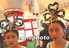 圖:飛天公關小姐推介"神舟"宇航飛船 2002年05月26日 11:08 ![]() 兩名扮作古代飛天仙女的甘肅公關小姐,在五月北京國際科技產(chǎn)業(yè)博覽會上,推介身后的中國“神舟”宇航飛船。賈國榮 攝
