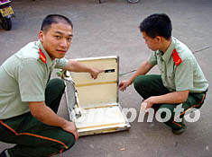 圖:一塊華航空難客機殘骸運抵泉州 2002年05月30日 10:37 ![]() 五月二十九日下午,“閩泉漁0一七九號”漁船將打撈出的一塊華航客機殘骸交予邊防派出所。這塊客機殘骸是一塊“T”字型的鋁合金邊的木板,木板邊沿上刻有“409A”、“409”兩處紅色標記,一塊木板右上側貼有一小塊黑色的鐵皮,上面印有“MAX.INSERT”和“WEIGHT 40.0 POUNDS”兩排英文字母。徐承彬 攝
