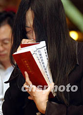 組圖:臺北舉行追思"華航"遇難乘客法會 2002年05月31日 19:59 ![]() 五月三十一日,“華航” 董事長李云寧參加臺北佛教界追思遇難者法會時下跪,向遇難者致哀。中新社記者 任晨鳴 攝