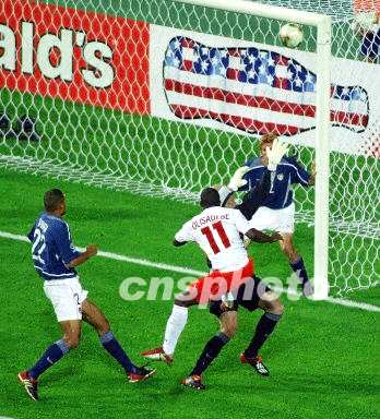 圖:波蘭2:0美國(guó) 奧利薩德貝進(jìn)球瞬間 2002年06月14日 20:06 ![]() 韓日世界杯D組波蘭隊(duì)與美國(guó)隊(duì)的比賽在韓國(guó)大田世界杯體育場(chǎng)進(jìn)行,目前比賽正在進(jìn)行,場(chǎng)上比分為波蘭隊(duì)2-0領(lǐng)先,11號(hào)奧利薩德貝為波蘭隊(duì)先入一球,9號(hào)克里扎洛維茨攻入第二球。圖為奧利薩德貝進(jìn)球瞬間。