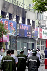 北京一網(wǎng)吧今晨發(fā)生火災(zāi)造成24死13人受傷(圖) 2002年06月16日 09:10 ![]() 目前起火原因正在調(diào)查之中。新華社記者 唐召明攝 中新網(wǎng)北京6月16日消息:據(jù)新華網(wǎng)報道,今天凌晨2時40分左右,北京海淀區(qū)學(xué)院路20號院內(nèi)的一家藍(lán)極速網(wǎng)吧發(fā)生火災(zāi)。經(jīng)公安消防部門現(xiàn)場勘察,火災(zāi)造成24人死亡,13人受傷。 接報后,北京公安消防部門迅速趕到現(xiàn)場。3時30分,火被撲滅。記者在現(xiàn)場了解到,公安部、北京市領(lǐng)導(dǎo)在現(xiàn)場組織搶救。火災(zāi)原因正在調(diào)查中。(牛愛民、李煦)