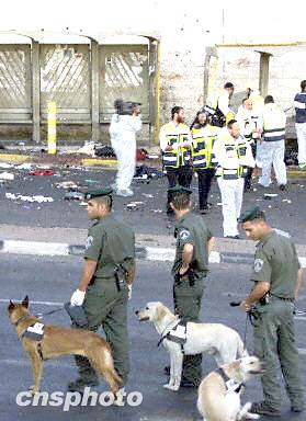 耶路撒冷再次發(fā)生自殺性爆炸事件 至少7死37傷 2002年06月20日 06:52 ![]() 以色列警察和搜索炸彈的專家在耶路撒冷法蘭西山附近。 中新網(wǎng)北京6月20日消息:耶路撒冷19日晚上發(fā)生一起自殺性爆炸事件,至少造成7人死亡,37人受傷。這是耶路撒冷市區(qū)在不到48小時內(nèi)發(fā)生的第二起自殺性爆炸事件。 爆炸發(fā)生在東耶路撒冷的法蘭西山附近的一個交叉路口。據(jù)耶路撒冷警察局局長列維說,兩名以色列邊防警察在此路口發(fā)現(xiàn)一名神色可疑的人,在警察準(zhǔn)備上前盤查時此人引爆了綁在身上的炸彈。 據(jù)國際在線報道,巴勒斯坦主流派別法塔赫下屬的“阿克薩烈士旅”已宣稱對此次爆炸事件負(fù)責(zé)。 耶路撒冷18日曾發(fā)生一起自殺性爆炸事件,共有19名以色列人喪身,50多人受傷。(陳莊)