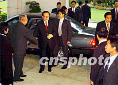 圖:董建華在禮賓府迎候江澤民主席 2002年06月30日 22:04 ![]() 六月三十日,香港特首董建華在香港特區(qū)政府禮賓府歡迎國家主席江澤民,圖為董建華與夫人在禮賓府迎候江澤民主席。潘索菲 攝