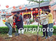 圖:廣東高考狀元孔廟內(nèi)栽種“狀元樹(shù)” 2002年08月08日 19:00 ![]() 8日上午,廣東五名高考“狀元”在廣東肇慶市德慶孔廟講述各自如何學(xué)習(xí)、如何用好的心態(tài)克服人生的轉(zhuǎn)折點(diǎn),贏得了該縣近二千名家長(zhǎng)和學(xué)生的陣陣掌聲。圖為“狀元”在孔廟內(nèi)種下五棵“狀元樹(shù)”。作者:黃謝