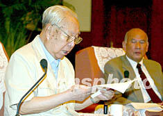 ![]() 黃埔軍校同學會在京理事九日舉行座談會,譴責陳水扁的“臺獨”言論。圖為黃埔軍校同學會宣傳委員、周恩來總理的侄女周秉德在會上發(fā)言。毛建軍 攝