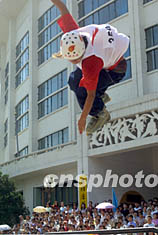 圖:全國(guó)極限精英賽在北京工人體育館舉行 2002年08月10日 16:45 ![]() 中國(guó)極限精英賽十日在北京工人體育館舉行,北京選手在滑輪街式比賽中的高難度騰空動(dòng)作令人驚嘆。 作者:史利