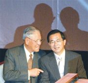 陳水扁與李登輝同臺(tái)現(xiàn)身 一唱一和鼓吹“臺(tái)獨(dú)” 2002年08月12日 09:49 ![]() 李登輝(左)與陳水扁交頭接耳(臺(tái)灣聯(lián)合報(bào)圖) 中新網(wǎng)香港8月12日消息:臺(tái)北訊,陳水扁與李登輝昨天先后在“臺(tái)獨(dú)”黨派“臺(tái)灣團(tuán)結(jié)聯(lián)盟”一周年“黨慶”活動(dòng)中放話,再放“臺(tái)獨(dú)”厥詞,而且兩人致詞內(nèi)容明顯相互呼應(yīng)。 在“臺(tái)聯(lián)黨”的“特別安排”下,陳水扁與李登輝兩人繼陳氏拋出“一邊一國論”之后,首度公開同臺(tái)亮相。 陳水扁在發(fā)言時(shí)未提所謂“一邊一國”論,但又抹黑中國大陸對(duì)臺(tái)灣“武力威脅”和“國際打壓”,并鼓動(dòng)說:“對(duì)的信念絕不放棄,對(duì)的路要繼續(xù)走! 陳水扁還用閩南語說,“不能被人唬得驚驚到”,要“歡喜看未來”。 李登輝隨后發(fā)言公開支持陳水扁,聲稱“百分之百”支持所謂“一邊一國”論,并指此論為“事實(shí)的表述”。這名“臺(tái)聯(lián)黨”的“精神導(dǎo)師”更鼓吹堅(jiān)持臺(tái)灣“主權(quán)獨(dú)立”,并指兩岸是“國與國的關(guān)系”。 李登輝呼應(yīng)陳水扁“不要被嚇倒”的說法,對(duì)“臺(tái)獨(dú)”份子放話說“免驚啦”,而且“不要被臺(tái)北‘外來政權(quán)’的大本營與統(tǒng)派媒體嚇倒”。 島內(nèi)媒體報(bào)道指出,陳水扁與李登輝先后發(fā)言的內(nèi)容明顯相互呼應(yīng),陳水扁要“臺(tái)聯(lián)黨”在當(dāng)局“立法院”中力拼李登輝定的“指標(biāo)”說35席,李登輝則說“很不好意思,還差20多席”;陳水扁要大家不要被中國大陸“嚇倒”,李登輝則要大家“安心”。兩人不僅相偕進(jìn)場(chǎng),而且陳水扁在臺(tái)上講話時(shí),臺(tái)下的李登輝頻頻拍手。